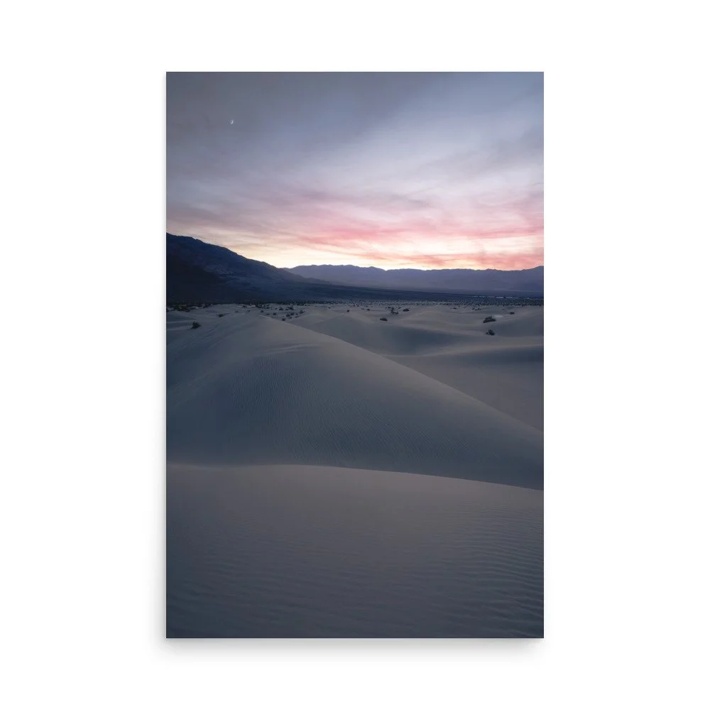 Prints › Mesquite Sand Dunes | Death Valley National Park Image 1 of 5 Image 2 of 5 Image 3 of 5 Image 4 of 5 Image 5 of 5 Mesquite Sand Dunes | Death Valley National Park from $30.50 This poster has a partly glossy, partly matte finish and it'll add a touch of sophistication to any room. • 10 mil (0.25 mm) thick • Slightly glossy • Fingerprint resistant • Paper sourced from Japan Size: Select Size 11″×14″ 12″×18″ 16″×20″ 18″×24″ 24″×36″ Add To Cart Added! This poster has a partly glossy, partly matte finish and it'll add a touch of sophistication to any room. • 10 mil (0.25 mm) thick • Slightly glossy • Fingerprint resistant • Paper sourced from Japan